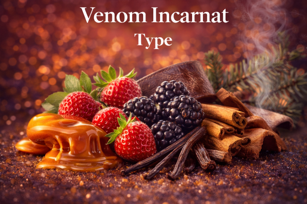 Inspired by Stéphane Humbert Lucas Venom Incarnat, this interpretation captures dark berry sweetness wrapped in smoky leather and caramelized warmth.